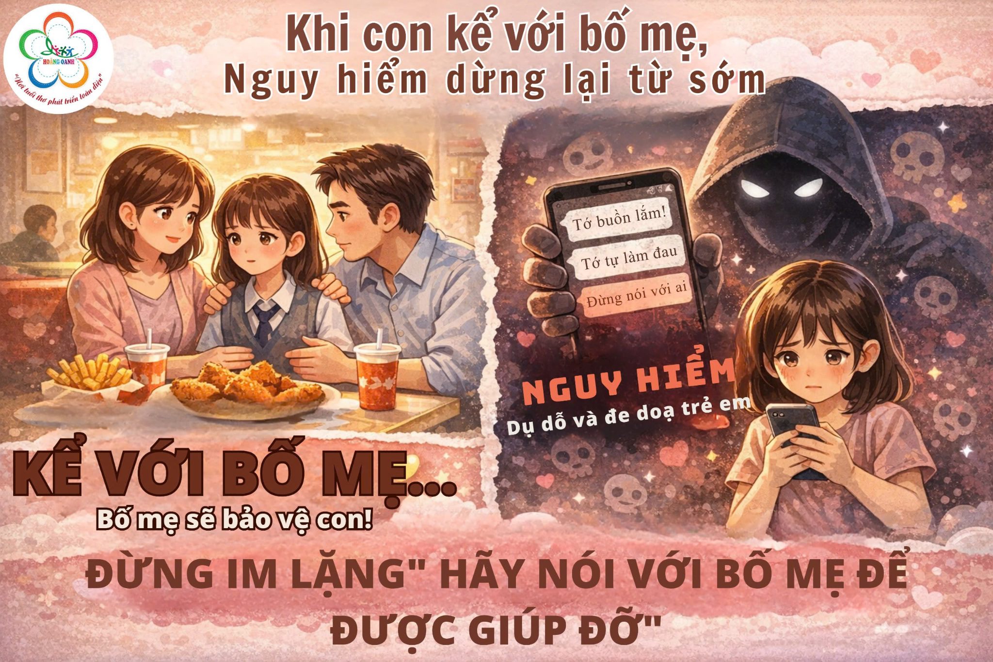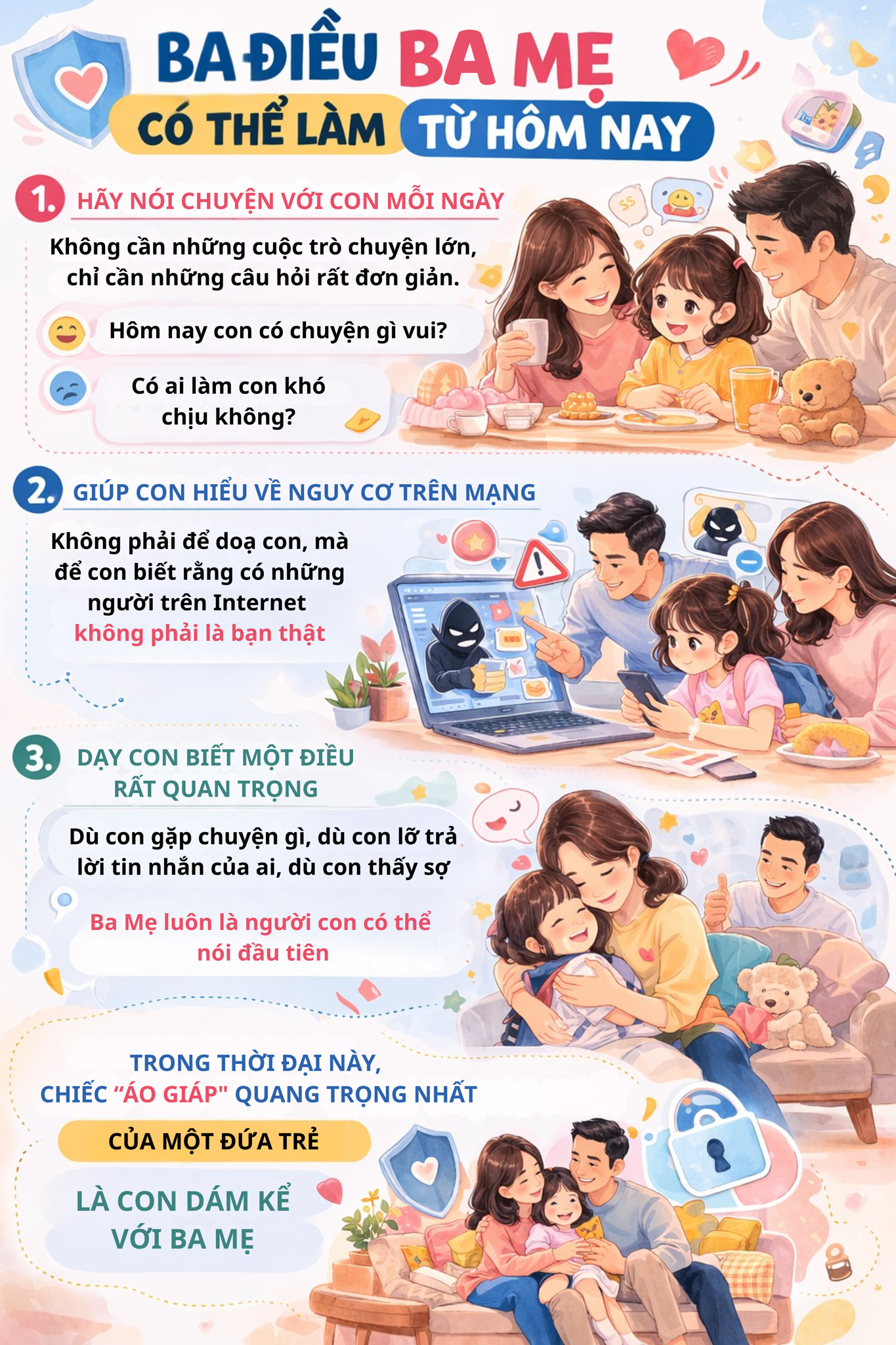 Nếu trẻ dám kể chuyện mình gặp trên mạng, dám nói khi mình sợ, dám chia sẻ khi có điều bất thường. Thì rất nhiều nguy hiểm sẽ dừng lại từ rất sớm.