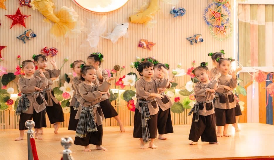 Cùng với không gian tràn ngập sắc màu của ánh trăng thì chương trình múa hát đêm hội Trung thu đã diễn ra với sự góp mặt của nhiều màn trình diễn hấp dẫn như múa lân sư rồng, tiết mục võ thuật cổ truyền Việt Nam và đặc biệt nhất phải kể đến sự tỏa sáng của các con ở trên sân khấu thông qua các bài múa hát.