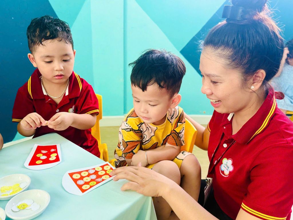 - Các cô dạy cho con tính tự lập, kỷ luật trong vệ sinh, ăn uống biết tự cầm muỗng, ngủ biết tự lấy gối vào vị trí của mình.